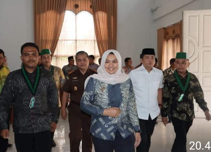 Wakil Bupati Mandailing Natal (Madina) Atika Azmi Utammi Nasution menghadiri Pelantikan Pengurus Himpunan Mahasiswa Islam (HMI) dan Kohati Cabang Madina periode 2022-2023 di Gedung Serbaguna, Desa Parbangunan, Kecamatan Panyabungan, Sumatera Utara, Kamis ( 29/9/2022 ).