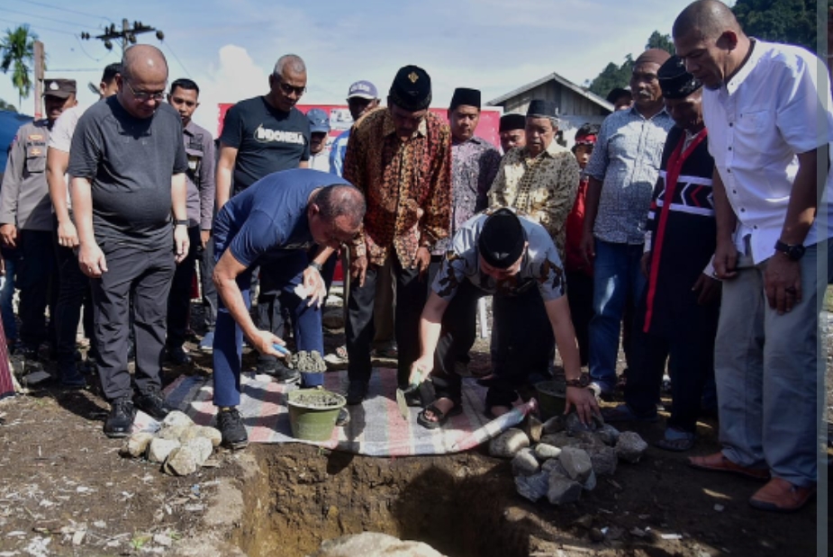Gubernur Sumatera Utara saat meletakan batu pertama revitalisasi Bagas Godang di desa Huta Godang Madina, Rabu, ( 12/10/2022 ).