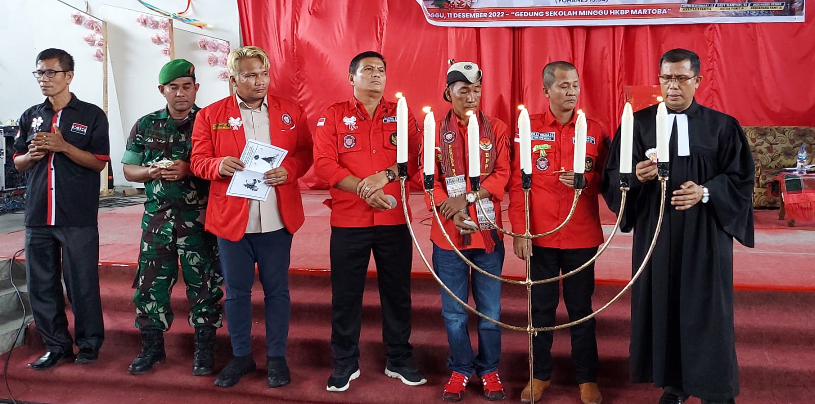 Turut hadir Ketua DPC Kota Medan Dolli Sinaga SE bersama jajaran PAC dan Forkopimcam serta masyarakat sekitar dalam tata ibadah perayaan Natal yang dipusatkan di Gedung Sekolah Minggu HKBP Martoba, Jalan Sisingamangaraja Km 10, Kecamatan Medan Amplas.