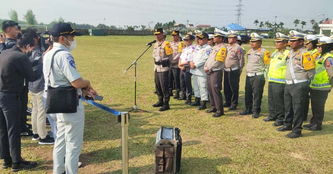 Wakapoldasu Brigjen Pol Drs. Jawari, S.H., M.H. memimpin Apel Gelar Pasukan Ops Keselamatan Toba dan mengecek kesiapan personil secara fisik.