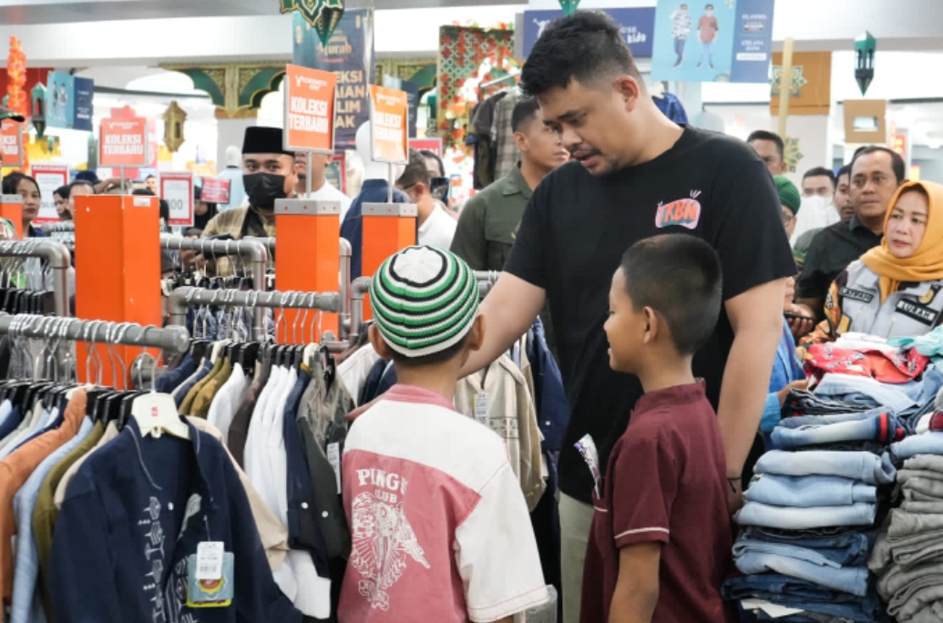 Transnusantara.co.id, Medan, –Kegembiraan terpancar di wajah Aznan. Minggu (16/4) sore, anak yatim usia sepuluh tahun itu berbelanja baju dan sepatu lebaran bersama Wali Kota Medan Bobby Nasution di Ramayana Robinson.