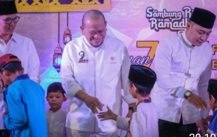 Transnusantara.co.id, SURABAYA – Ketua DPD RI, AA LaNyalla Mahmud Mattalitti menghadiri acara ‘Sambung Rasa Ramadan 777 Penggerak Ekonomi Surabaya’ yang diselenggarakan Kamar Dagang dan Industri (KADIN) Surabaya bekerjasama dengan BPC Himpunan Pengusaha Muda Indonesia (HIPMI) Surabaya di Graha Kadin Jatim, Sabtu (15/4/2023).