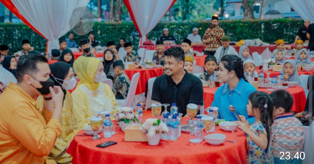 “Alhamdulillah, hari ini masih diberi Allah SWT kenikmatan sehingga dapat berbuka puasa dengan anak-anak Yatim,” kata Bobby Nasution