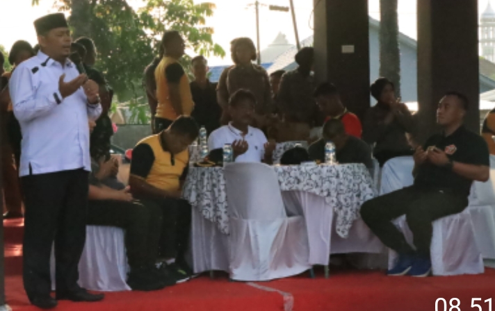 Sebelum dimulainya kegiatan olah raga bersama diawali dengan DO’A dan Ceramah dari Ustaz Irfan Yusuf als Ustadz Rahul dengan inti cerahmahya bahwa TNI dan POLRI harus selalu bersinergi dan tidak bisa dipisahkan dalam menjaga keamanan dan kekondusifan dalam NKRI khususnya di kota Binjai.