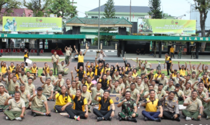 Senam bersama ini dilakukan sebagai wujud sinergitas antara TNI dan Polri yang dilakukan di Lapangan Benteng Medan, Selasa (02/05/23) pagi.