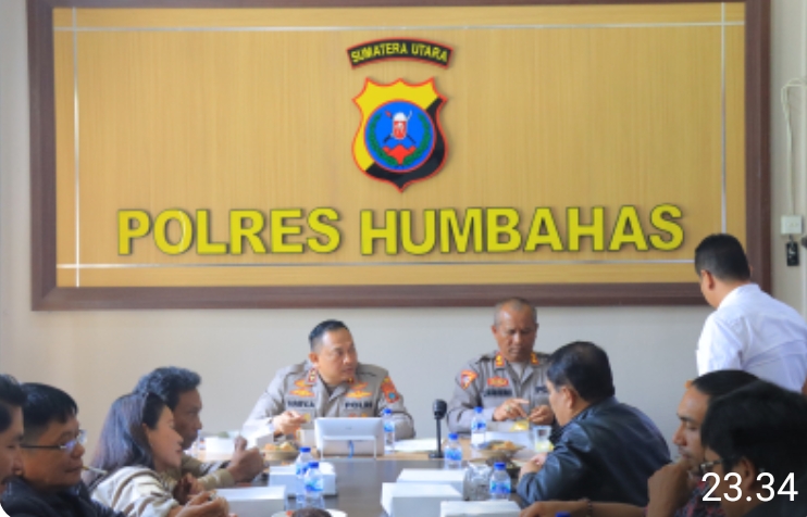 Humbahas,Transnusantara.co.id – Kapolres Humbang Hasundutan AKBP Hary Ardiyanto SH SIK MH, didampingi Wakapolres AKBP Tanggap Manurung, Kasat Reskrim AKP Maste Maruli T. Purba SH MH, Kasat Intelkam AKP Abner Lubis, Kasat Binmas AKP Daryanto, Kasat Samapta AKP Leonardo Simanjuntak SH, dan Ps.Kasihumas AIPDA Delmart Sitompul laksanakan giat Coffe Morning di aula DP. Silitonga Polres Humbang Hasundutan bersama rekan media, sahabat dan mitra polri, Rabu (03/05/23).