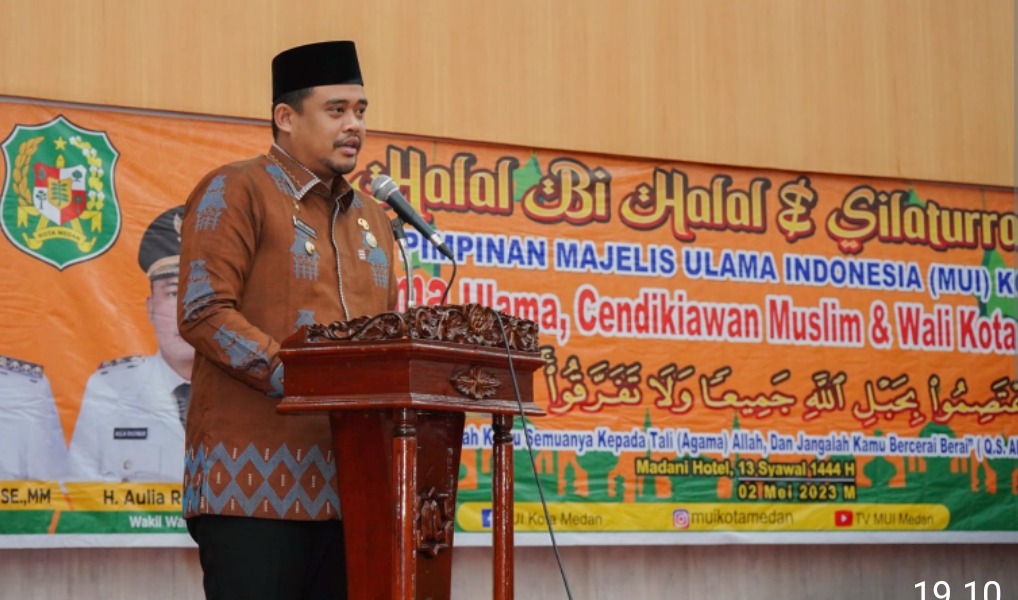 “Dengan doa dan dukungan yang diberikan para ulama, insya Allah pembangunan yang dilaksanakan Pemko Medan, salah satunya pembangunan Islamic Centre dapat berjalan lancar,” kata Bobby Nasution ketika menghadiri Halal Bihalal bersama MUI Kota Medan, para ulama, tokoh agama dan cendekiawan Muslim Kota Medan di Hotel Madani Jalan Sisingamangaraja Medan, Selasa (2/5).