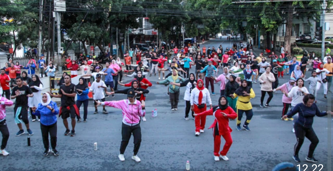Saat penyelenggara memulai senam bersama, suasana pun kian hangat. Warga berkumpul di depan panggung utama yang didirikan di persimpangan Jalan Balai Kota. Para instruktur dengan komunikatif mengajak masyarakat senam bersama bersama lagu-lagu. Kegembiraan dan semangat tampak di wajah warga, terutama kaum ibu yang berusaha mengikuti gerakan para instruktur senam tersebut.