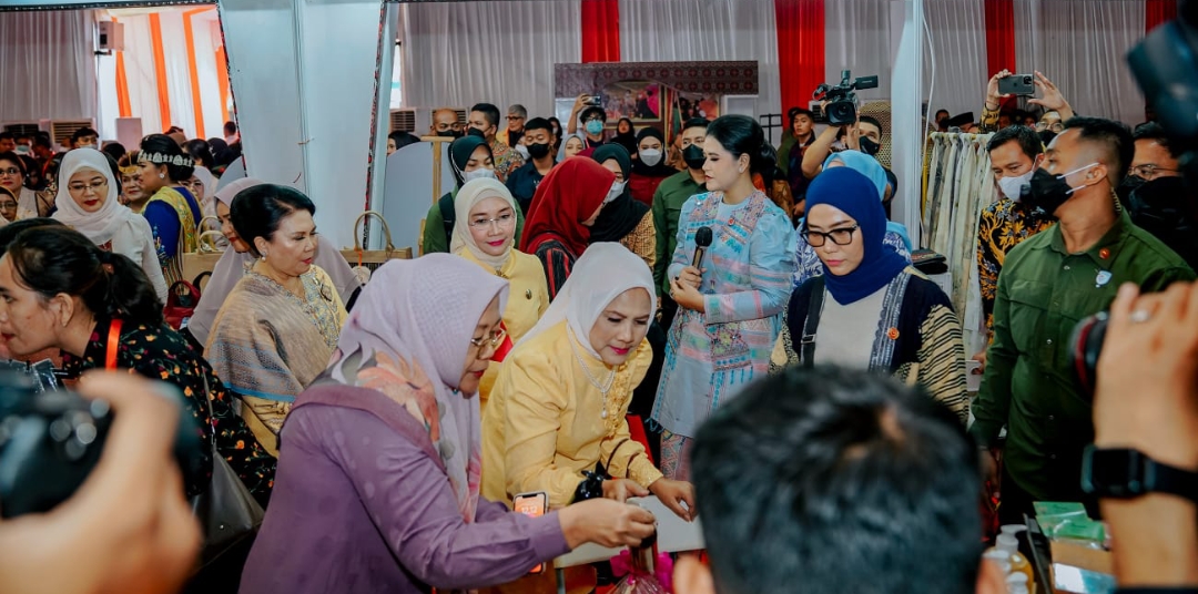 “Kami menampilkan berbagai hasil terbaik kerajinan khas Kota Medan. Ada berbagai produk dari para pengrajin Kota Medan seperti berbagai koleksi kain ulos dan hasil produk jadi dari kain ulos. Selain itu kami juga menampilkan hasil produk sabun cair dan sabun batangan,” kata Ny Kahiyang Ayu.