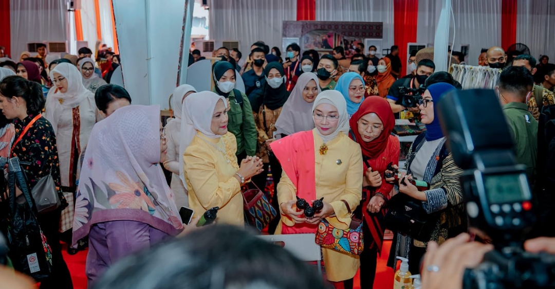 Kedatangan Ibu Negara beserta rombongan ini langsung disambut dengan penuh kehangatan oleh Ketua Dekranasda Kota Medan Ny Kahiyang Ayu M Bobby Afif Nasution. Di stand tersebut Ibu Negara melihat berbagai produk hasil kerajinan khas Kota Medan.