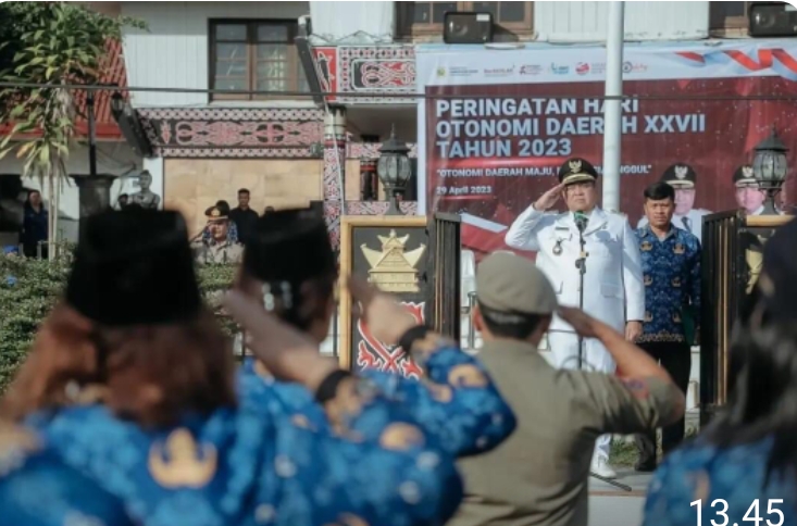 DAIRI, TransNusantara.co.id – Mengambil tema “Otonomi Daerah Maju Indonesia Unggul”, Pemerintah Kabupaten Dairi melaksanakan Upacara Peringatan Hari Otonomi Daerah ke-XXVII tahun 2023 di halaman Kantor Bupati Dairi, Sidikalang, Sabtu (29/4/2023).