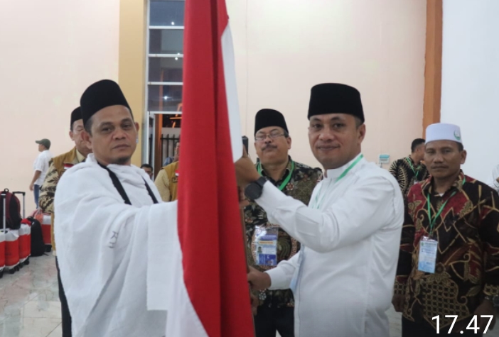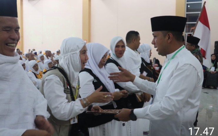 Bupati menyerahkan bendera keberangkatan kepada Ketua Kloter dan berpesan kepada seluruh pendamping jemaah calon haji agar selalu memperhatikan,memantau dan memeriksa keadaan dan kondisi kesehatan jemaah haji yang berusia lanjut dan dapat melayani para jemaah dengan baik selama menjalankan ibadah haji.