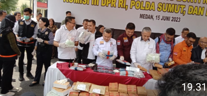 Selanjutnya, hasil tangkapan narkoba berbagai merek itu pun dimusnahkan Polda Sumut bersama Komisi III DPR RI dengan menggunakan mesin incenarator, Kamis (15/06/23).