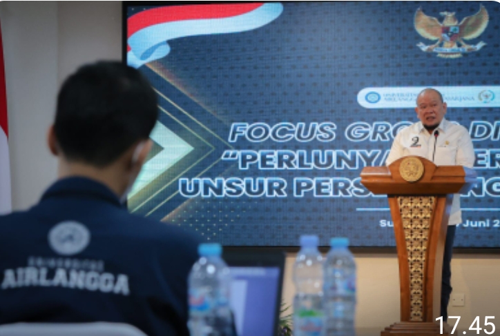 LaNyalla hadir bersama Staf Khusus Ketua DPD RI Sefdin Syaifudin, Plt Kepala Puskadaran DPD RI Ahmad Djunaedi, Kepala Bidang P4 Pusperjakum DPD RI Anies Mayangsari.