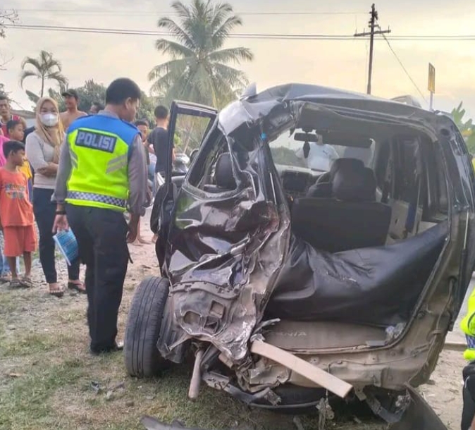 SERGAI, Trans Nusantara, Heboh mobil Xenia BK 1413 ZI yang dikemudikan Ngatino (52) di Sikat ular besi yang datang dari arah Medan menuju Tebing Tinggi, tepatnya di perlintasan rel Kereta Api (KA) Jalan Sunario Lingkungan X Kelurahan Tualang Kecamatan Perbaungan Kabupaten Serdang Bedagai (Sergai), pada Minggu (23/7/2023), sekira pukul 17.00 WIB.