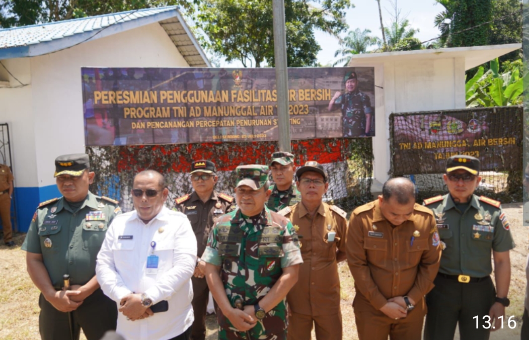 Bangun Purba, Trans Nusantara– Pangdam I/BB, Mayjen TNI A Daniel Chardin, SE, MSi, meresmikan penggunaan fasilitas air bersih program TNI AD Manunggal Air TA 2023 dan Percepatan Penurunan Stunting di wilayah Kodim 0204/Deliserdang, tepatnya di Desa Rumah Deleng, Kecamatan Bangun Purba, Kabupaten Deliserdang, Selasa (25/7/2023).