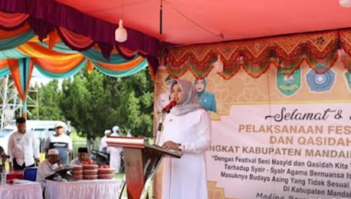Madina, Trans nusantara – Wakil Bupati Mandailing Natal (Madina) Atika Azmi Utammi Nasution membuka kegiatan Festival seni Nasyid & Qasidah ke 20 Tingkat Kabupaten di pelataran parkir masjid agung Nur Ala Nur, desa Parbangunan, Kecamatan Panyabungan, Jumat (4/8/2023).