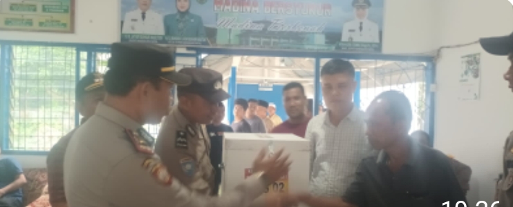 Penyerahan logistik Pilkades diwilayah Kecamatan Siabu dihadiri olah Pihak kecamatan Siabu, Kapolsek Siabu, Danramil Siabu.