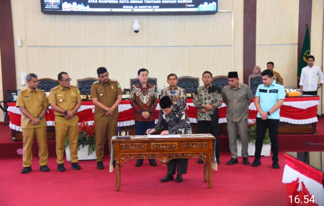 ” Pemerintah Kota Medan bersama dengan Dewan Perwakilan Rakyat Daerah Kota Medan telah menyetujui Rancangan Peraturan Daerah Kota Medan tentang inovasi daerah,” ujar Wali Kota.