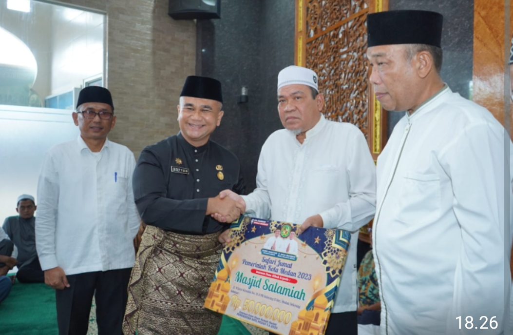 Medan, Trans Nusantara–Bantuan senilai Rp 50 juta rupiah untuk kemakmuran mesjid diberikan Wali Kota Medan Bobby Nasution kepada BKM Mesjid Salamiyah. Bantuan ini diserahkan ketika Safari Jumat yang dilaksanakan Pemko Medan di Masjid Salamiyah jalan Bunga Wijaya Kusuma, Medan Selayang, Jumat (25/08/2023).