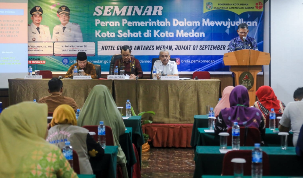 Medan, Trans Nusantara–Guna mewujudkan Kota Medan sebagai kota Sehat, Pemko Medan melalui Badan Riset dan Inovasi Daerah (BRIDA) menggelar seminar hasil dengan tema Peran Pemerintah Dalam Mewujudkan Kota Sehat di Kota Medan. Seminar yang dilakukan untuk mewujudkan kota Medan sebagai kota Sehat ini berlangsung di hotel Grand Antares, Jalan Sisingamangaraja, Jumat (1/9/2023).
