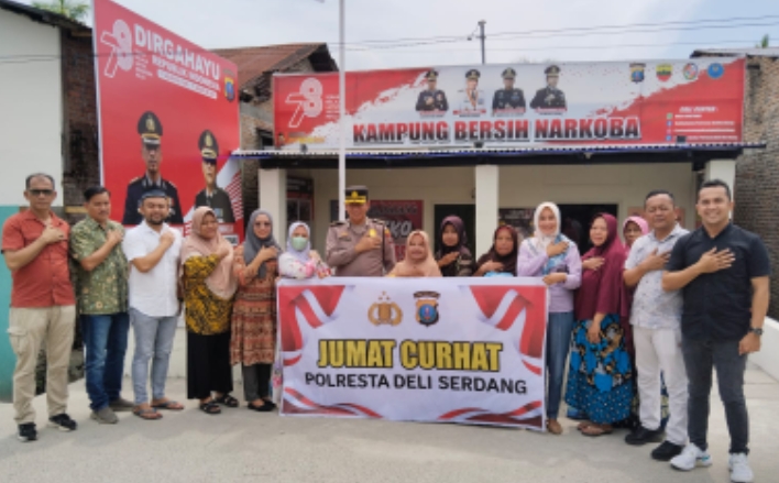 “Ini merupakan kegiatan rutinitas kita (Polri) untuk menjemput permasalahan yang ada di tengah masyarakat sekaligus mendengarkan keluh kesah masyarakat Khususnya terkait Narkoba, kata Kabag Log Polresta Deli Serdang kepada seluruh warga yang hadir pada kegiatan Jumat Curhat.
