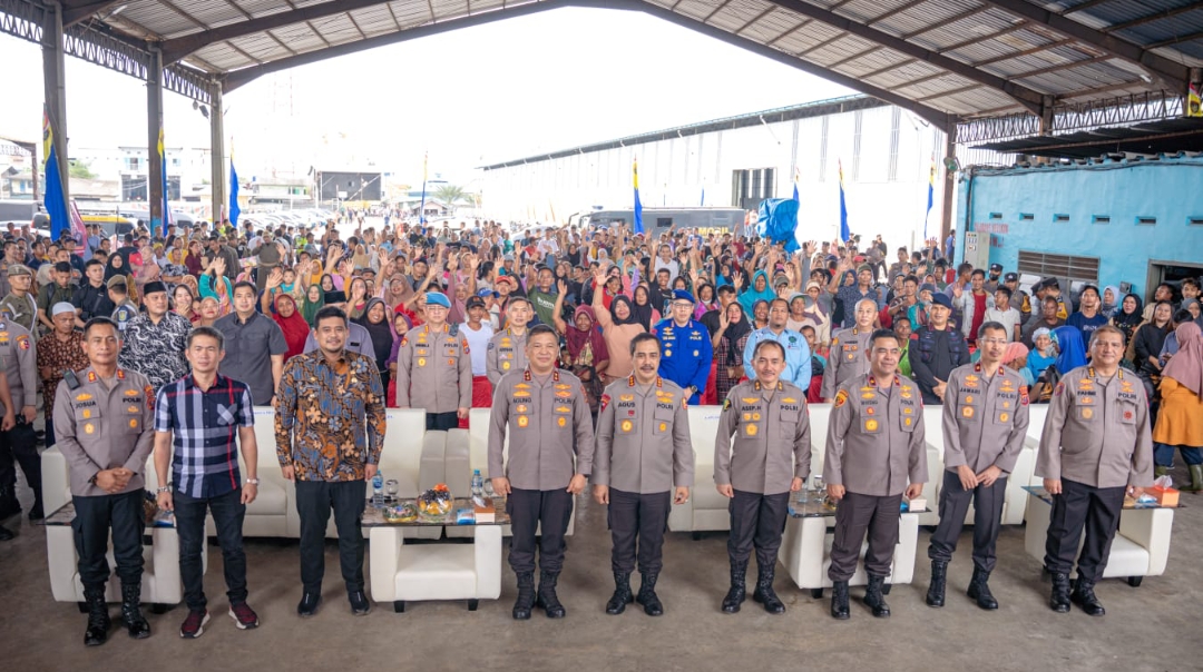 Medan, Trans Nusantara–Rona bahagia terpancar dari seribuan masyarakat pesisir Belawan dan nelayan saat Wali Kota Medan Bobby Nasution mendampingi Wakapolri Komjen Pol Agus Andrianto memberikan bantuan sosial di pelataran PT Belawan Samudera Abadi, Jalan Gabion, Kecamatan Medan Belawan, Kamis (21/9) siang.