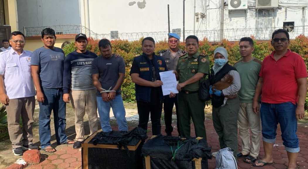 Dari pengungkapan jual beli satwa yang dilindungi itu diamankan seorang terduga yang menjadi kurir bernama Reza Heryadi (35) dengan barang bukti 2 ekor Orang Utan jantan dan betina yang diperkirakan masih berusia 5 bulan.