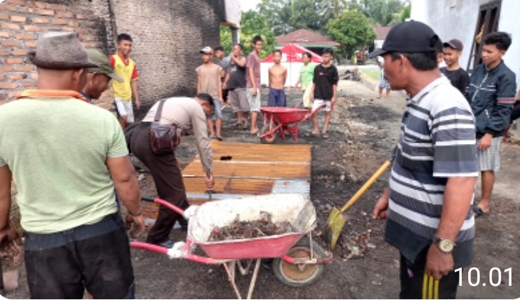 Melaksanakan gotong royong (Korve) bakti sosial merupakan bentuk kepedulian Polsek Perbaungan kepada warga masyarakat yg terkeba musibah maksud mebambah penyemangat agar kuat menghadapi musibah yg dialami dan juga agar tidak terus bersedih.
