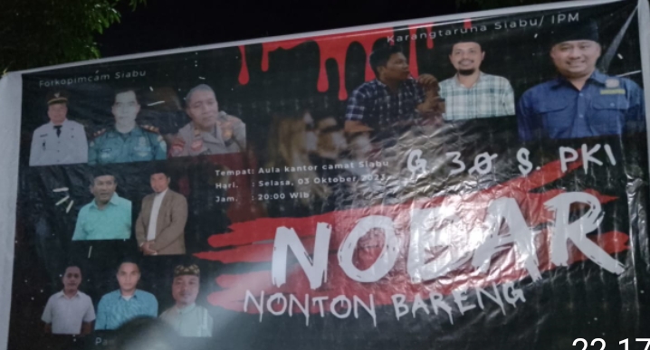 MADINA, Trans Nusantara– Forkopimcam Kecamatan Siabu Mandailing Natal dan Karang Taruna Kecamatan Siabu menggelar acara nonton bareng film G30S/PKI di halaman gedung Kantor Camat Siabu, Madina, Selasa ( 03/10/2023 ).