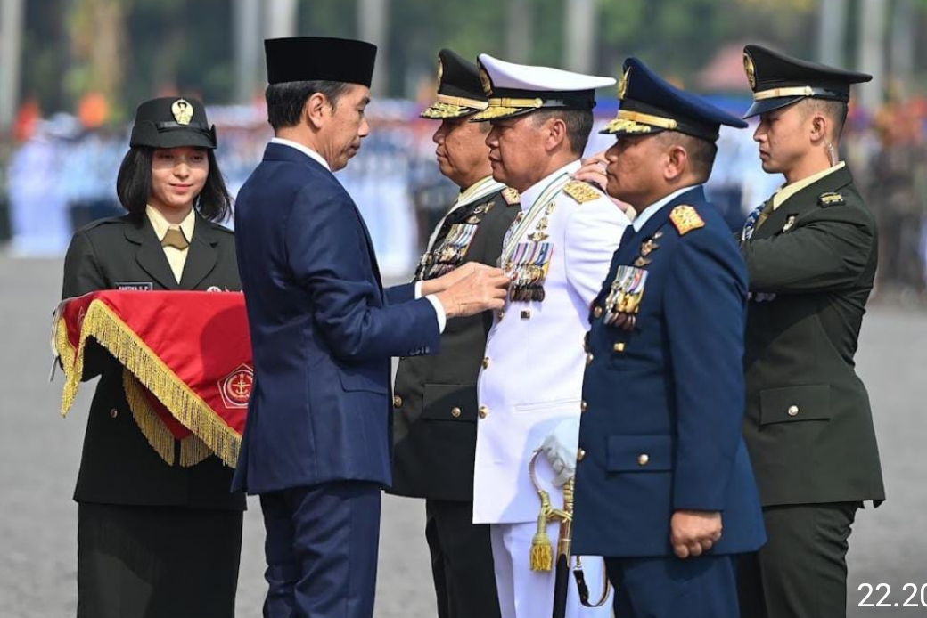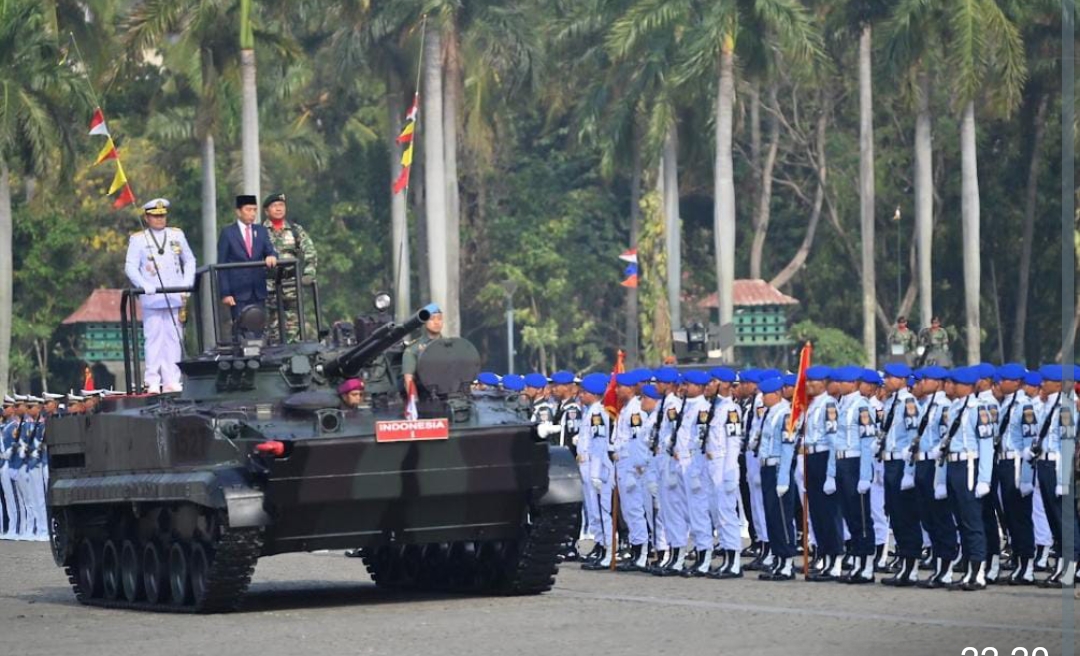 Demikian dikatakan oleh Presiden RI H. Joko Widodo selaku Inspektur Upacara yang didampingi oleh Panglima TNI Laksamana TNI Yudo Margono, bersama Kasad, Kasal, dan Kasau, dalam rangka Hari Ulang Tahun ke-78 TNI dengan mengusung tema “TNI Patriot NKRI, Pengawal Demokrasi Untuk Indonesia Maju”, berlangsung di Silang Monas, Jakarta Pusat, Kamis (5/10/2023).