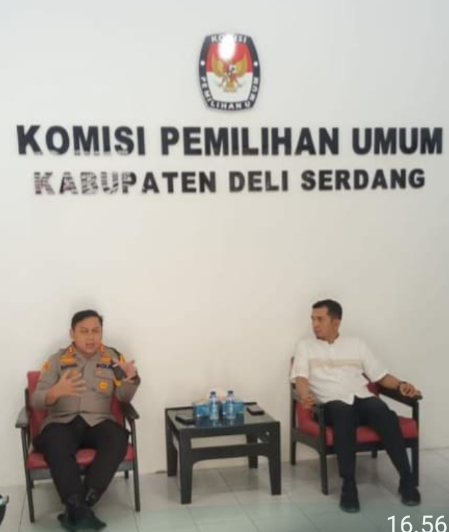 Kedatangan Kapolresta Deli Serdang AKBP Raphael Sandhy Cahya Priambodo SIK, dan rombongan disambut langsung Ketua KPU Deli Serdang Syahrial Efendi, bersama pengurus dan anggota KPU lainnya.