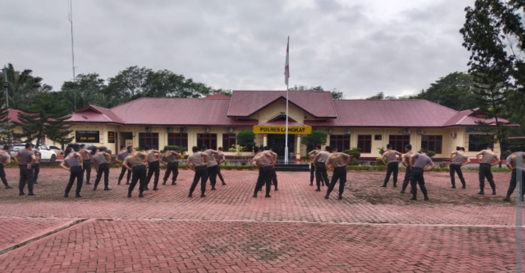 Trans Nusantara, Langkat- Polres Langkat melaksanakan kegiatan pelatihan fisik bagi Personil Dalmas Polres Langkat. Kegiatan ini digelar di lapangan Jananuraga Polres Langkat dengan tujuan meningkatkan kesehatan dan mental personel dalam menghadapi tahapan Pemilu 2023-2024 di wilayah hukum Polres Langkat.Kamis(26/10/2023) pkl 09.00 Wib