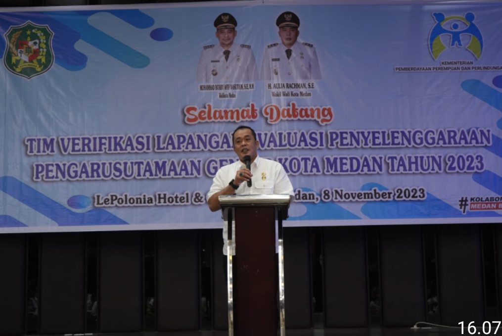 Demikian disampaikan Wakil Wali Kota Medan, Aulia Rachman saat mewakili Wali Kota Medan, Bobby Nasution dalam acara Verifikasi Lapangan Evaluasi Penyelenggaraan Pengarusutamaan Gender Kota Medan tahun 2023 di Hotel Le Polonia, Rabu (8/11).