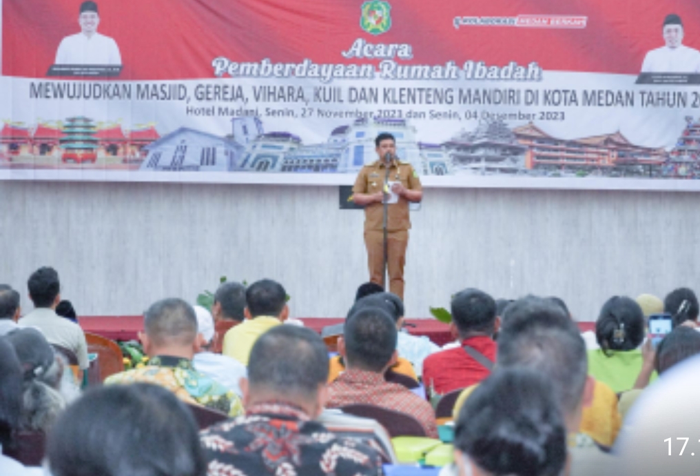 Demikian disampaikan Wali Kota Medan Bobby Nasution saat hadir di Acara Pemberdayaan Rumah Ibadah dalam rangka Mewujudkan Masjid, Gereja, Vihara, Kuil dan Klenteng Mandiri di Kota Medan Tahun 2023 di Hotel Madani, Jalan Sisingamangaraja Medan, Senin (27/11).