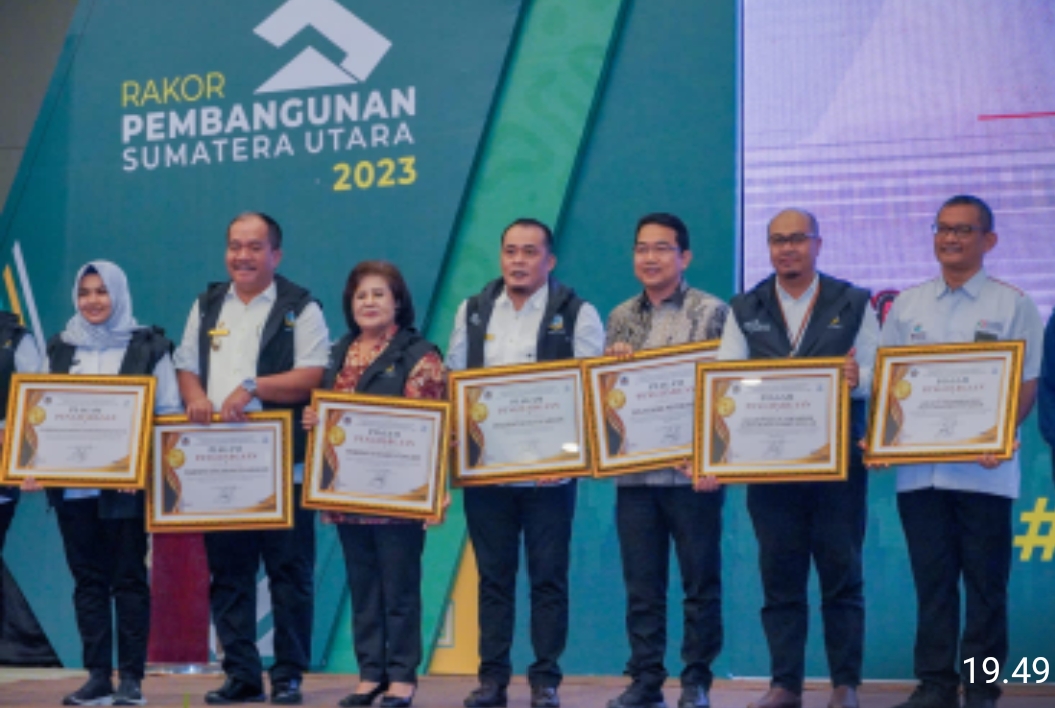 Penghargaan tersebut diterima Wali Kota Medan Bobby Nasution diwakili Wakil Wali Kota H Aulia Rachman dalam Rapat Koordinasi (Rakor) Pembangunan Sumatera Utara Tahun 2023 di Santika Hotel Medan, Jalan Kapten Maulana Lubis, Rabu (13/12). Pj Gubernur Sumut Hassanudin yang menyerahkan langsung penghargaan dalam bentuk piagam tersebut.
