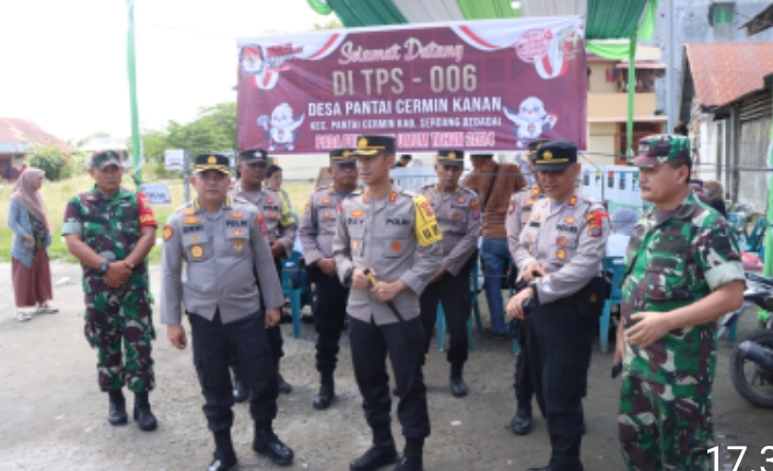 Sergai – Transnusantara.co.id – Kapolres Serdang Bedagai AKBP Oxy Yudha Pratesta SIK, mendampingi Kunjungan Tim Asistensi Mabes Polri dan Polda Sumut bersama jajaran Forkopimda Serdang Bedagai, dalam melakukan kunjungan khusus untuk memantau langsung proses pemungutan suara di beberapa Tempat Pemungutan Suara (TPS), Rabu (14/02/2024).