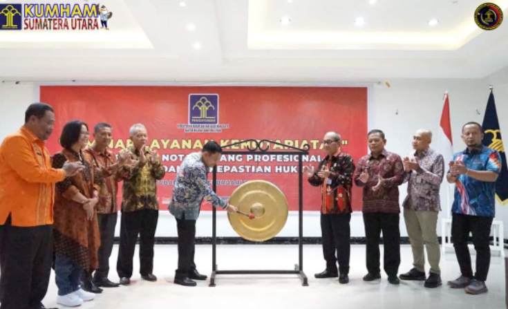 Batu Bara – Transnusantara.co.id – Kepala Kantor Wilayah Kementerian Hukum dan Hak Asasi Manusia Sumatera Utara, Mhd. Jahari Sitepu, didampingi oleh para Pimpinan Tinggi Pratama Kanwil Kemenkumham Sumut serta Kepala Lembaga Pemasyarakatan Kelas IIA Labuhan Ruku membuka secara resmi kegiatan seminar layanan kenotariatan, di Singapore City Hotel Batubara, Kamis ( 15/2/2024.
