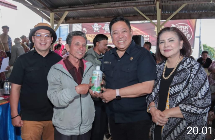 DAIRI , Transnusantara.co.id – Bupati Dairi Dr. Eddy Keleng Ate Berutu melakukan kunjungan kerja ke Dusun II Sibira, Desa Parbuluan VI, Kecamatan Parbuluan, Kamis (1/2/2024). Pada kesempatan tersebut, Eddy Berutu membagikan Pupuk Hayati Cair (PHC) atau liquid bio fertilizer kepada 18 kelompok tani atau sekitar 360 petani.