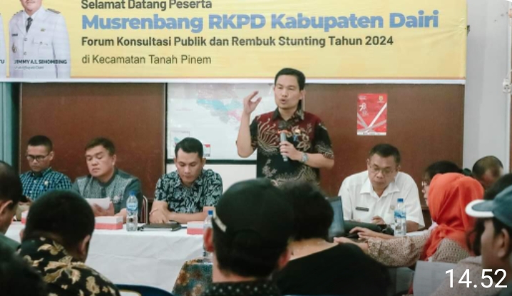 Demikian disampaikan Camat Tanah Pinem Jonathan Ginting melalui Sekretaris Camat Musa Sembiring dalam pertemuan Forum Konsultasi Publik dan Rembuk Stunting Tahun 2024 di Kantor Camat Tanah Pinem, Jumat (23/2/2024).