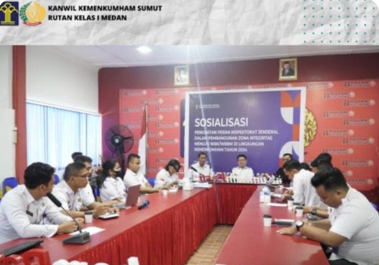 Medan – Transnusantara.co.id – Rumah Tahanan Negara (Rutan) Kelas I Tanjung Gusta Medan, Kanwil Kemenkumham Sumut, ikuti Kegiatan Pendampingan Pembangunan Zona Integritas menuju Wilayah Bebas dari Korupsi (WBK) dan Wilayah Birokrasi Bersih dan Melayani (WBBM) Pada Satuan Kerja Pemasyarakatan Tahun 2024, oleh Direktorat Jenderal Pemasyarakatan melalui virtual zoom meeting, di Jalan pemasyarakatan, Kec. Medan Helvetia, Kabupaten Deli Serdang, Rabu (06/03/2024).