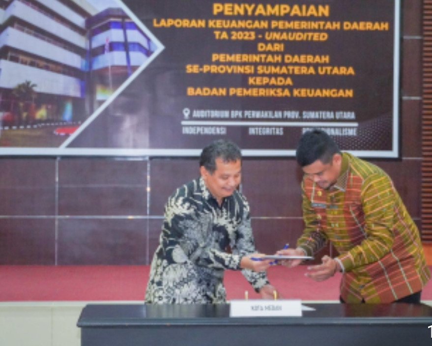 “Kami menyadari dalam menyusun laporan keuangan ini, masih belumlah sempurna. Oleh karenanya, kami harapkan rekomendasi dari BPK RI Perwakilan Provinsi Sumut dapat kami manfaatkan dalam penyempurnaan penyajian Laporan Keuangan Unaudited TA 2023,” kata Bobby Nasution.