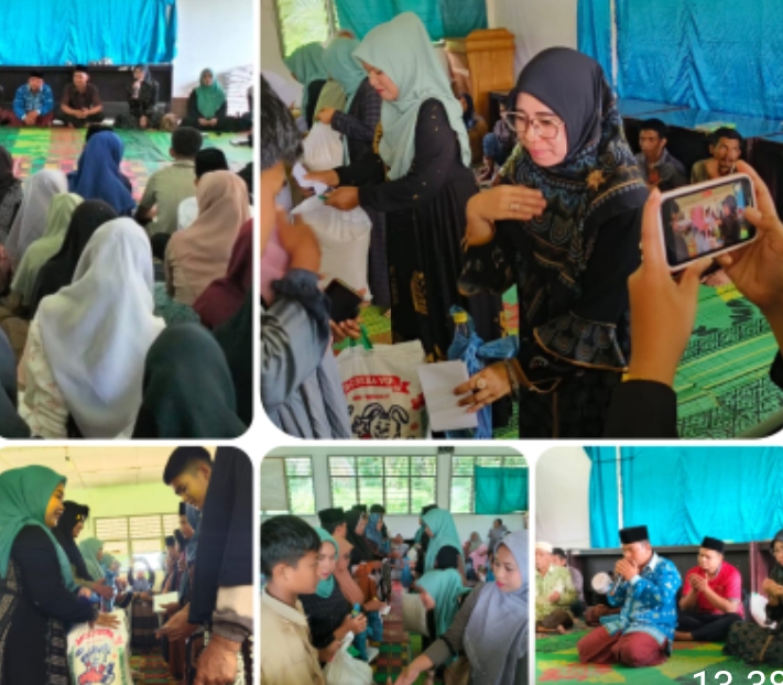 MADINA, Transnusantara–SMPN 1 Ranto Baek, Kabupaten Mandailing Natal, Sumut, mengadakan acara Khataman Al Qu’ran sekaligus menyerahkan santunan kepada anak yatim Siswa- Siswi. di Aula SMP N 1 Ranto Baek. Sabtu ( 23/3/2024 ).