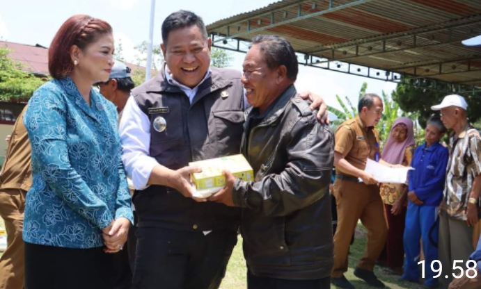 DAIRI , Transnusantara.co.id – Bupati Dairi, Eddy Keleng Ate Berutu didampingi Ketua TP PKK Kabupaten Dairi Romy Mariani Simarmata- Ny.Eddy Berutu menyerahkan sembako kepada Lansia dan penyandang disabilitas, yang ada di Kecamatan Siempat Nempu dan juga Pemberian Makanan Tambahan (PMT) sebanyak 10 paket kepada balita di halaman Kantor Camat Siempat Nempu, Senin (18/3/2024).