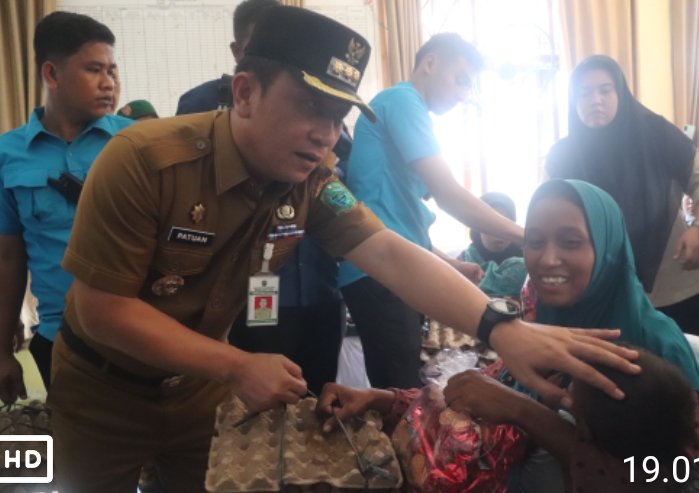 PALUTA,Trans Nusantara.co.id-Penjabat (PJ) Bupati Paluta Patuan Rahmat Syukur P.Hasibuan, S.STP.MM, memberi bantuan makanan tambahan kepada 34 orang Anak Usia di bawah Lima tahun (balita) yang mengalami Stunting di Kabupaten Padang Lawas Utara, Selasa ( 30/04/2024 ).