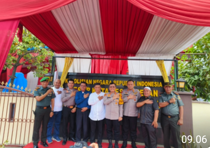 Bel Sirine pun dibunyikan dengan keras, diiringi terbukanya tirai yang menutupi Nomenklatur di dinding pagar depan Mapolsek yang telah berganti nama menjadi Polsek Medan Tembung.