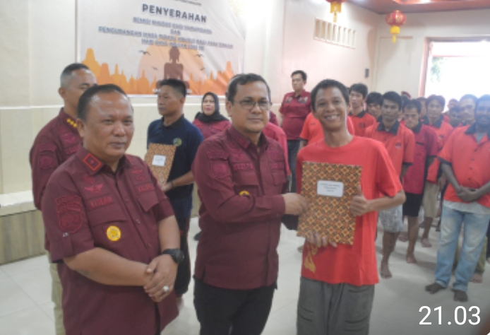 Bertempat di Vihara Lapas Kelas I Medan, 43 Orang warga binaan yang beragama Budha mendapatkan haknya atas pengurangan masa hukuman atau remisi khusus Hari Raya Waisak.