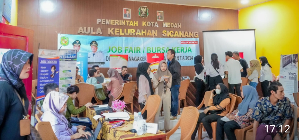 Medan, Transnusantara–Sebanyak 557 lowongan kerja dengan 18 jabatan tersedia dalam Job Fair yang digelar Dinas Ketenagakerjaan (Disnaker) Medan, Kamis (30/5) di aula Kantor Lurah Belawan Sicanang Kecamatan Medan Belawan.