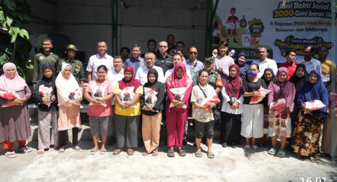 Apresiasi tersebut disampaikan Wali Kota Medan, Bobby Nasution diwakili Asisten Perekonomian dan Pembangunan Setda Kota Medan, Agus Suriyono saat menghadiri acara bakti sosial pembagian 2000 karung beras kepada masyarakat dalam rangka memperingati Hari Lingkungan Hidup Sedunia di Taman Bunga JNT Express, Kec. Medan Belawan, Rabu (5/6).