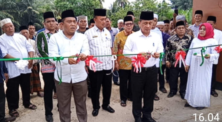 Pengguntingan pita peresmian Masjid, dilakukan oleh PJ Bupati Paluta Patuan Rahmat Syukur P. Hasibuan,S.STP.MM di dampingi PLH Sekdakab Paluta Makmur Harahap ST.MM, Anggota DPRD dari Partai Golkar Mula Rotua Siregar.